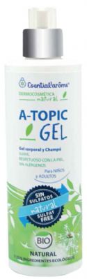 Esential’arôms® ha formulado A-TOPIC GEL® , un gel corporal y champú suave y a la vez calmante; sin sulfatos, sin alérgenos, certificado natural y con ingredientes ecológicos.