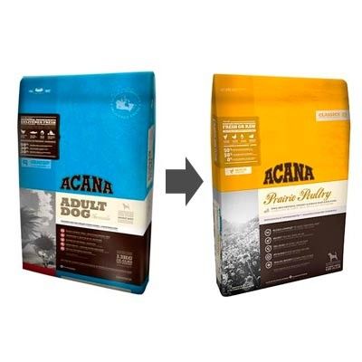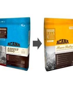 Acana Prairie Poultry Adult se convierte en Acana Prairie Poultry perros adultos, comida para perros a base de carne de pollo y libre de hidratos de carbono.