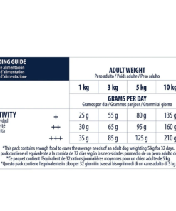 A continuación te mostramos una tabla con la dosis diaria recomendada de pienso que debes suministrar a tu mascota. Recuerda que las cantidades deben ajustarse al peso y actividad de tu mascota.