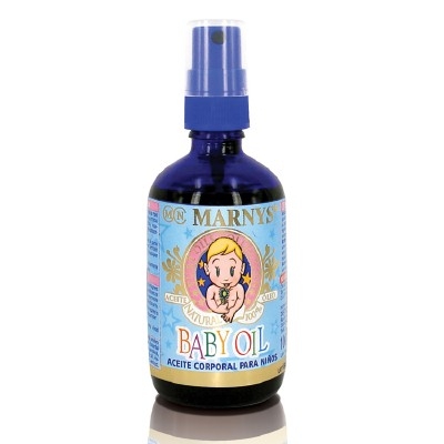 Aceite corporal para niños MARNYS® BABY OIL para suavizar la piel del niño. Es una mezcla compleja de aceites 100% naturales de la mas alta calidad. No contiene conservantes, aditivos químicos o perfumes sintéticos.