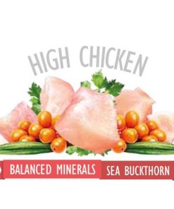 Especialmente, pollo deshidratado (22%), arroz, pollo deshuesado (20%), salvado de arroz, pavo deshidratado (6%), grasa de pollo (conservada con tocoferoles mezclados).