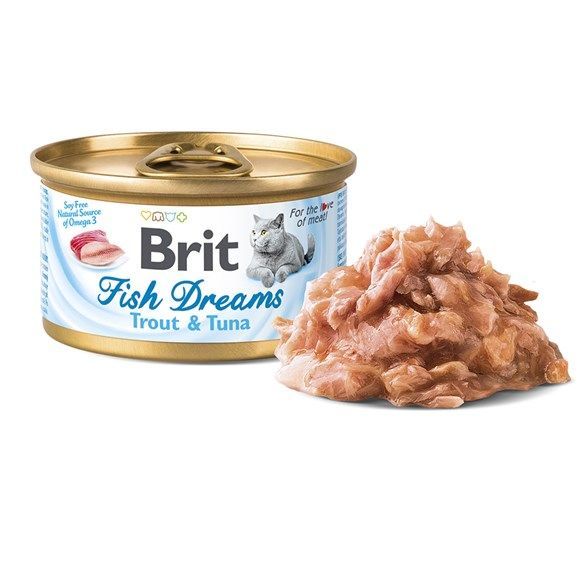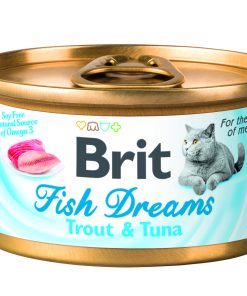 Brit Fish Dreams Trucha y atún es una forma natural para que el gato absorba más Omega 3 y líquido. La receta contiene ingredientes naturales y no contiene soja ni colorantes.