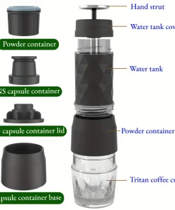 No necesita pilas ni electricidad, ¡solo funcionamiento manual! Con un tiempo de preparación de tan solo 1-2 minutos. La máquina de café expreso portátil es la compañera perfecta en movimiento.Con el acceso de agua caliente, podrás disfrutar de un espresso de manos realmente sabroso en casa, en la oficina o durante caminatas, acampadas y viajes.