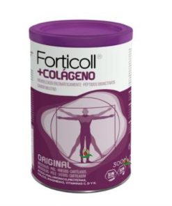 Péptidos de Colágeno Bioactivos (Fortigel(R)) (9.9 g), Carbonato cálcico (600 mg, eq. a 240 mg de calcio), Carbonato magnésico (450 mg, eq. a 113 mg de magnesio), Ácido ascórbico (24.5 mg, eq. a 24.5 mg de Vitamina C), Menaquinona-7 (Vitamina K2-7 natural-MenaquinGold(TM)) (11.3 mg, eq. a 22.5 mcg de Vitamina K) y ácido hialurónico (11 mg).