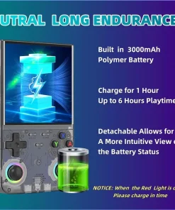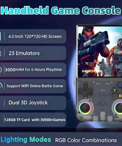 Con 128 GB de juegos precargados, esta consola portátil ofrece un amplio espacio de almacenamiento para horas de entretenimiento gaming.