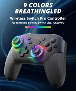 Controladores de interruptor inalámbricos, controladores de interruptor programables Pro para Switch/Switch Lite/OLED/PC, Gamepad de emparejamiento de una tecla con LED RGB de 9 colores, batería de 800mAh, Función de activación de movimiento de 6 ejes