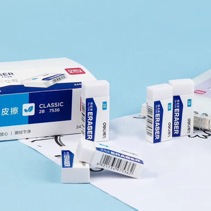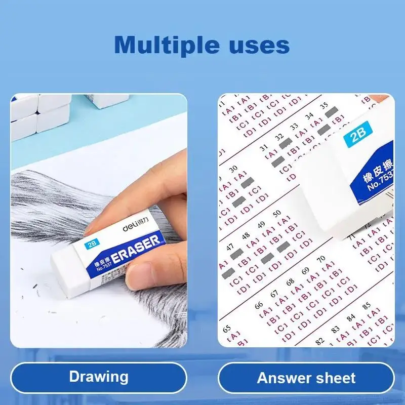 Deli 5/10 Uds 2B borrador limpio y libre de desorden examen de estudiante boceto de oficina borrador suave para niños suministros de corrección lápiz de goma