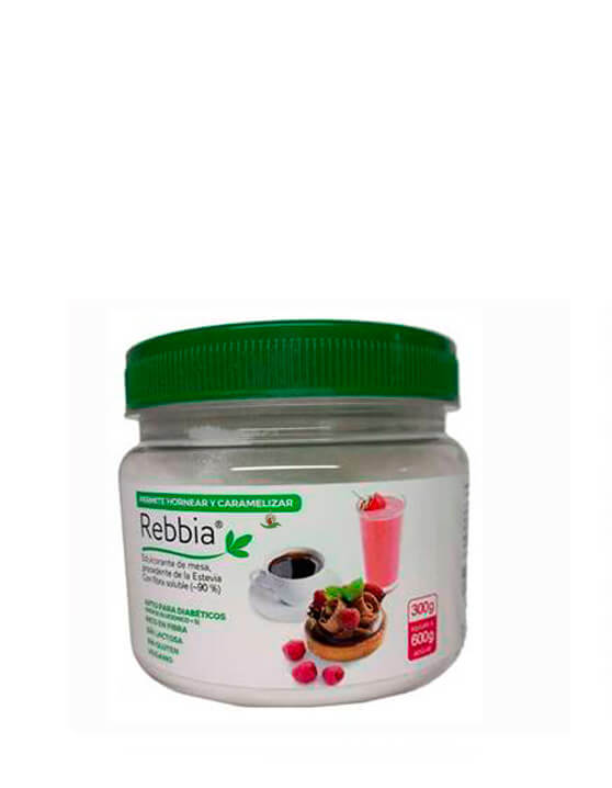 Peso: 1 bote de Rebbia® (300 g) = 600 g de azúcar