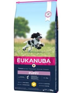 El pienso para cachorros Eukanuba Puppy&Junior es un alimento de gran calidad ideal para perros de entre 1 y 12 meses de razas medianas como beagle, cocker spaniel, collie o dachshund, que durante su edad adulta estarán entre los 15 y los 25 kg. Es un producto de calidad comprobada que contiene todos los nutrientes que tu mascota necesita para crecer sano, fuerte y lleno de vitalidad.
