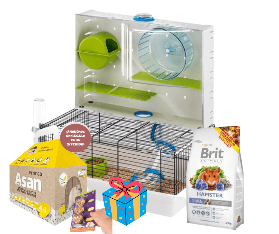 Se puede escoger solo la Jaula o el Pack completo que es perfecto para iniciarse con tu pequeño animalito y darle la mejor bienvenida a su hogar.