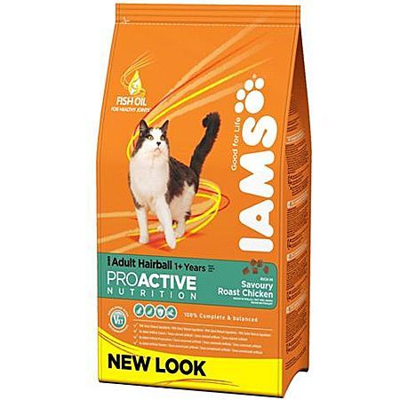 Iams ProActive Hairball Adult con pollo, ayuda a reducir el riesgo de formación de bolas de pelo.