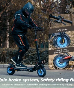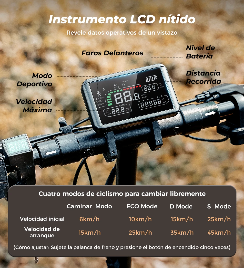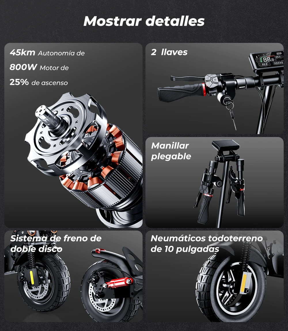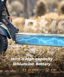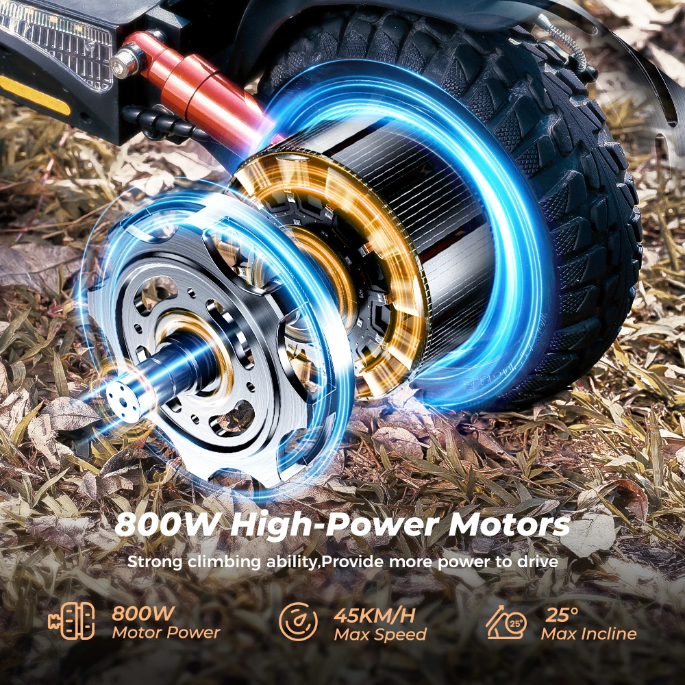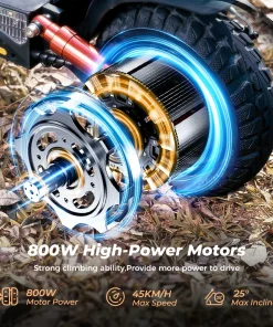 Con una batería de alta capacidad de 48V y 15Ah con motor de 800W, el scooter ofrece un impresionante rango de 40 a 45 km con una sola carga, perfecto para desplazamientos diarios o aventuras al aire libre.