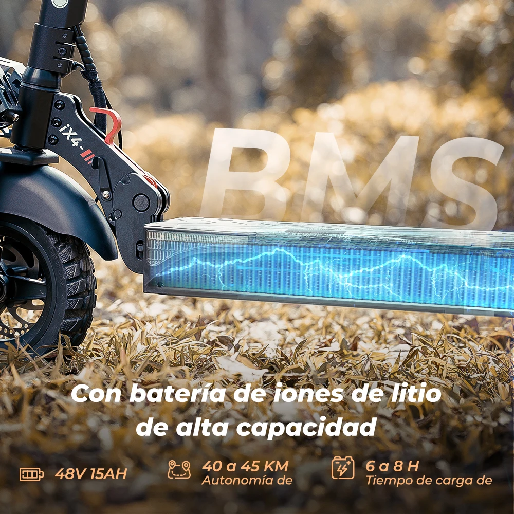 Diseñado para la comodidad y la seguridad, el iX4 cuenta con amortiguadores delanteros y traseros y frenos de doble disco, lo que garantiza estabilidad y control incluso en superficies rugosas.