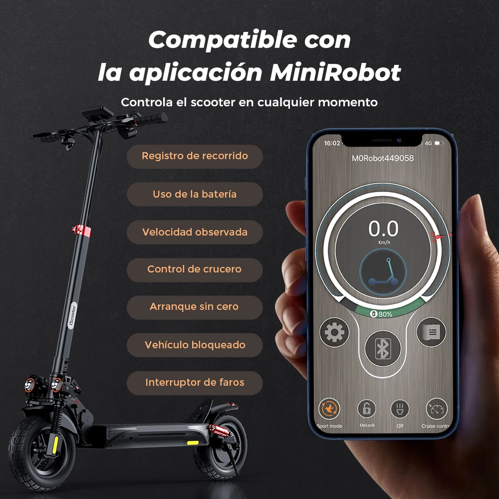 Con 4 modos de velocidad (6/10/15/25 km/h, escalable a 15/25/35/45 km/h) y soporte de la aplicación MiniRobot, puede personalizar su experiencia de conducción y monitorear el rendimiento sin esfuerzo.