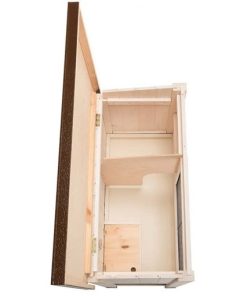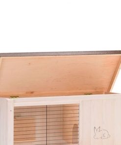 El techo puede abrirse completamente y tiene un brazo de soporte que hace la limpieza y sacar a tu conejo de la conejera mucho más fácil. Todos los modelos tienen una bisagra, puerta de madera, que permite sacar la gran bandeja interna para su limpieza.