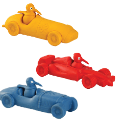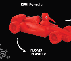 Aunque el kiwi pertenece a una especie no voladora, ¡le hemos dado el papel de piloto! En la colección Racing, nuestra mascota también es un corredor de Fórmula 1, un apasionado del kayak y un piloto de coches rápidos. Vendemos los juguetes de látex de la edición Racing en colores rojo, verde, azul y amarillo.