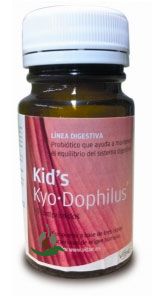 Kid´s Kyo·Dophilus® es un probiótico obtenido mediante el cultivo de tres cepas bacterianas de origen humano, estas cepas son: · Lactobacillus gasseri, bacteria que coloniza el intestino delgado. Ayuda a absorber y metabolizar lactosa formando ácido láctico, peróxido de hidrógeno y otros productos, ayudando a mejorar el tránsito intestinal. · Bifidobacterium bifidum, bacteria que coloniza el tramo final del intestino delgado y el primer tramo del intestino grueso. Ayuda a sintetizar varias vitaminas del grupo B y enzimas. · Bifidobacterium longum, bacteria que coloniza el intestino grueso. Como resultado de su metabolismo favorece la liberación de ácido láctico y otras sustancias.