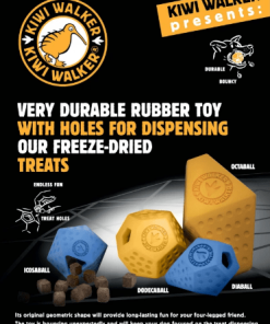 Juguete de goma muy resistente con agujeros para colocar golosinas de kiwi deshidratadas.