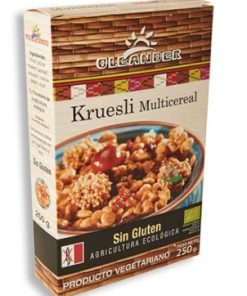 El Kruesli Multicereal de Oleander Bio ofrece un desayuno ideal, sabroso y saludable, proporcionando fibra y Omega 3, además de un alto contenido proteínico. Servir al gusto con leche o yogur y fruta.
