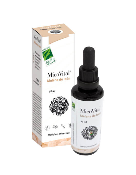 MicoVital® Melena de león es un complemento alimenticio a base de extracto del hongo melena de león (Hericium erinaceus), del que se utiliza exclusivamente el cuerpo fructífero, que contiene una mayor concentración en polisacáridos (beta-glucanos) y triterpenos como la hericenona y hericeninas, con propiedades neurotróficas.