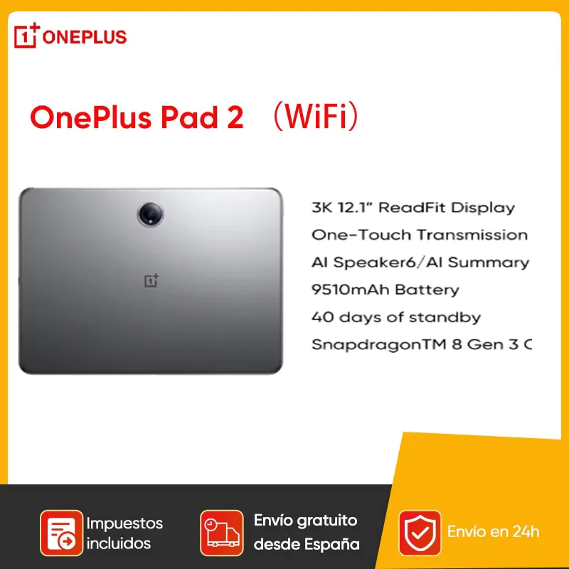 OnePlus Pad 2 Snapdragon 8 Gen 3 12GB + 256GB de almacenamiento 12,1 ”144Hz pantalla 67W SUPERVOOC 13MP cámara OS 14,1 2024 Pad Android