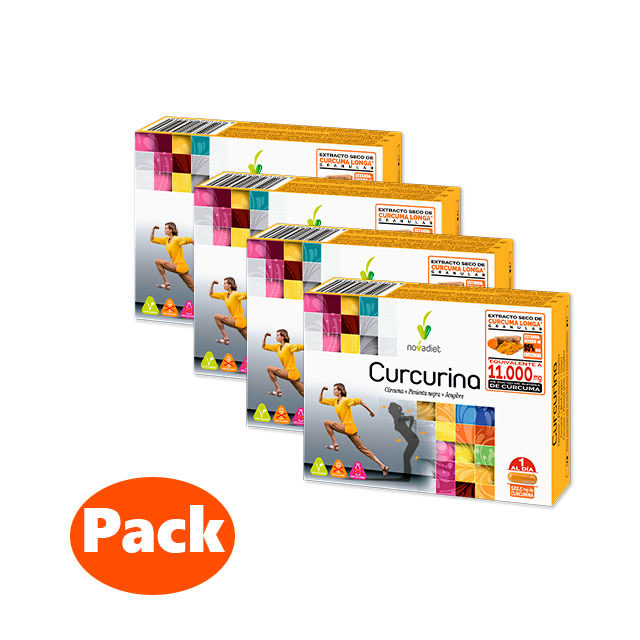 El Pack 4 de Curcurina de Novadiet reúne cuatro envases de 30 cápsulas (120 cápsulas en total) con una fórmula a base de extracto concentrado de cúrcuma (95% curcumina), pimienta negra Bioperine® y jengibre. Es una opción pensada para quien ya la integra en su rutina y busca continuidad y mejor precio por cápsula.