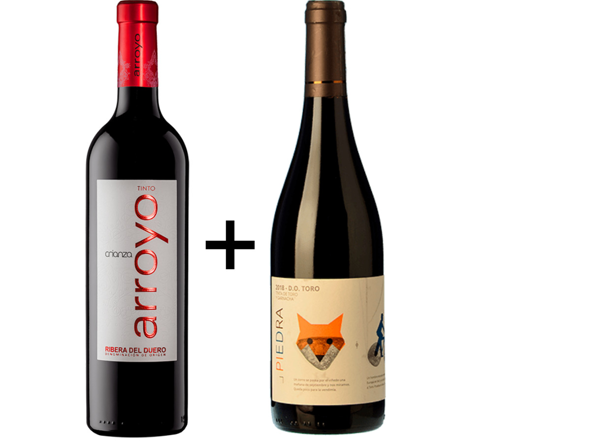 - Pack que agrupa al menos un vino Arroyo Crianza y un vino Piedra Roble.
