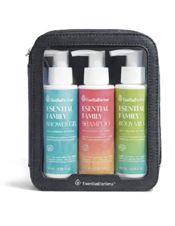 Tus esenciales viajan contigo. El Pack Esential’Family reúne gel corporal, champú y body milk de origen natural en formato práctico, ideal para el cuidado diario de la piel y el cabello. Fórmulas suaves con aloe vera y bayas de goji que limpian, hidratan y aportan confort, respetando el equilibrio cutáneo.