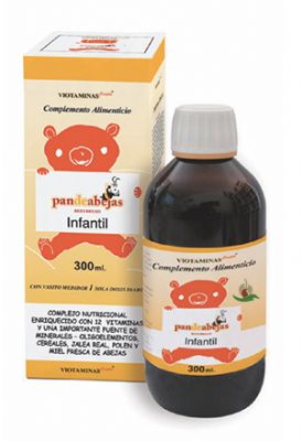 Este exquisito jarabe elaborado a base de extractos de cereales y leguminosas 100 % naturales, miel fresca, jalea real, propóleos y polen de abejas, además de una importante fuente de minerales, está magistralmente enriquecido con las principales vitaminas que garantizan, en una sola dosis, el aporte al 100 % de las necesidades diarias en el niño, de acuerdo con la Normativa Comunitaria Europea ( C.D.R. ).