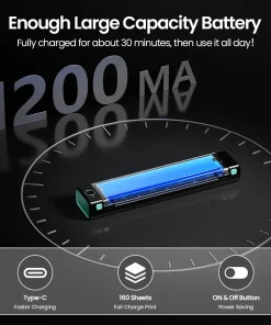 Recargable– La impresora de tatuajes inalámbrica M08F con una batería de gran capacidad de 1200 mAh.Con solo una carga completa, puede imprimir hasta 140 páginas de imágenes o texto de colores claros, lo que lo hace perfecto para múltiples sesiones de impresión de tatuajes.Como beneficio adicional, la impresora de plantillas M08F para tatuajes incluye 10 hojas de papel de transferencia de tatuajes para ayudarlo a comenzar.