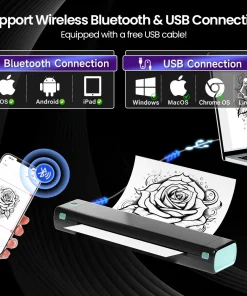 Alta compatibilidad– Con su compatibilidad con múltiples dispositivos, como teléfonos inteligentes, tabletas, computadoras portátiles y computadoras de escritorio, la impresora térmica para tatuajes M08F hace que el diseño e impresión sean más fáciles que nunca para los entusiastas del tatuaje.Es compatible con varios sistemas, incluidos Android, Apple, Windows, MacOS y ChromeOS.