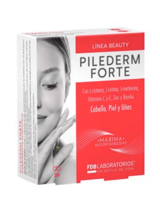 Pilederm Forte a base de aminoácidos, vitaminas y minerales contribuye a mejorar el aspecto de la piel, el cabello y las uñas. Recomendado para personas que desean reforzar su capa dérmica, el cabello o las uñas.