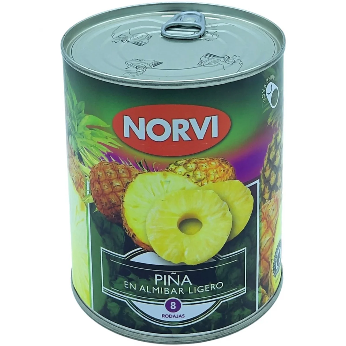 PIÑA RODAJAS EN ALMIBAR LIGERO NORVI 825G (490G ESCURRIDO)