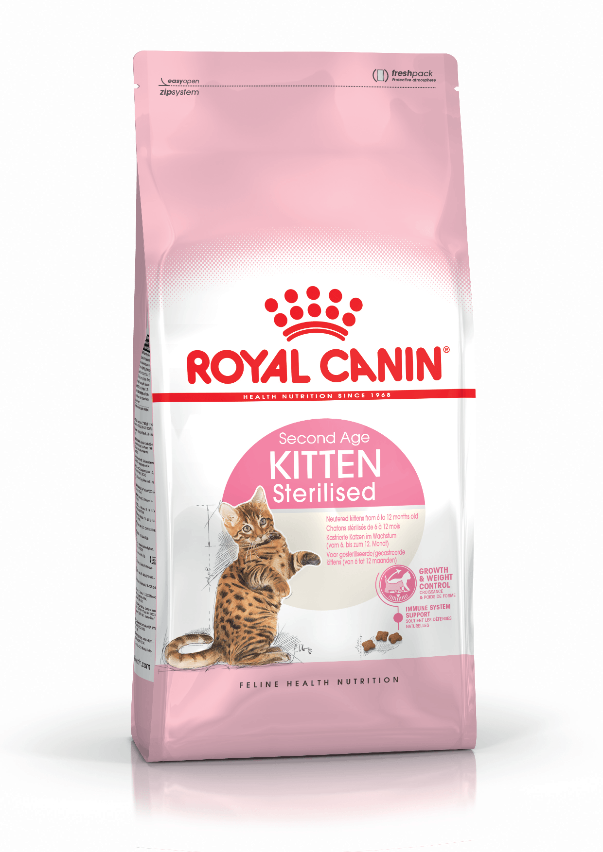 Después de la esterilización, las necesidades del gato cambian y su apetito aumenta. KITTEN STERILISED ayuda a limitar el riesgo de exceso de peso gracias a un contenido de grasa adaptado, y proporciona una ingesta equilibrada de nutrientes (proteínas, calcio, fósforo) para una etapa final de crecimiento armoniosa.