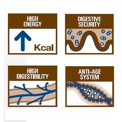 - Alta energía: Satisface las necesidades energéticas (mantenimiento, convalecencia), y permite reducir el volumen de la ración, disminuyendo así la carga digestiva.
