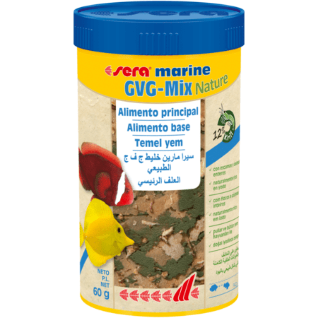 Sera marine GVG-Mix Nature es el alimento principal para peces de agua salada, sin colorantes ni conservantes.