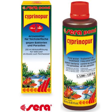 SERA Pond Cyprinopur® es un tratamiento altamente eficaz para el agua del estanque, ideal para combatir la hidropesía y los piojos de la carpa, problemas comunes en primavera cuando los peces son más propensos a enfermar.