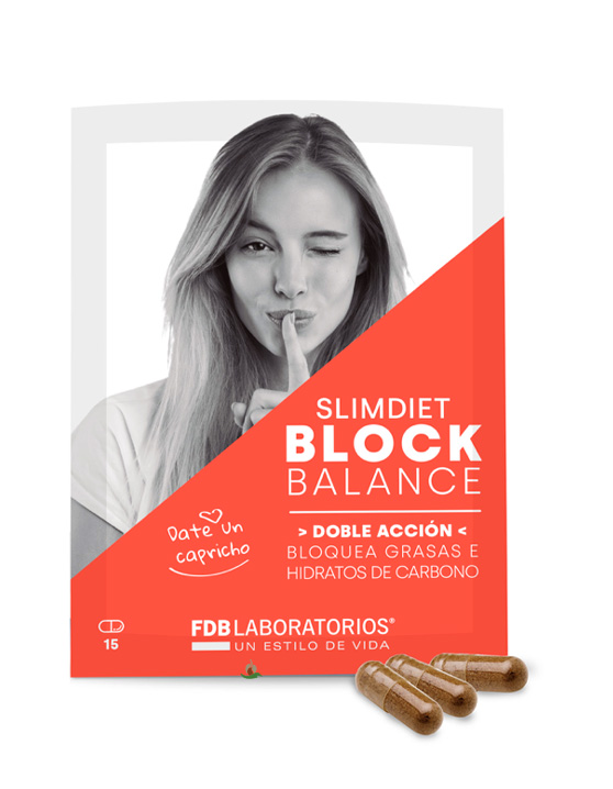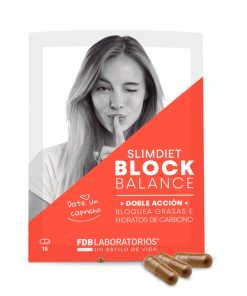 Slimdiet Blockbalance, complemento alimenticio, es un producto a base de Nopal (Neopuntia®), Faseolamina y Cromo.