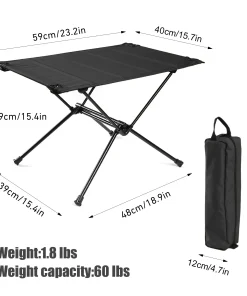 • Ligero y portátil :Con un peso de solo unas pocas libras, Esta mesa es fácil de transportar, por lo que es perfecta para acampar, hacer senderismo y otras actividades al aire libre.