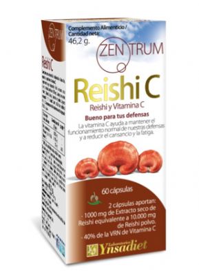 Reishi extracto seco (Ganoderma lucidum Karst) (500 mg), Antiaglomerantes (Fosfato cálcico, Celulosa, Estearato magnésico), Agente de carga (Almidón de maíz), Vitamina C (ácido ascórbico) (16 mg).